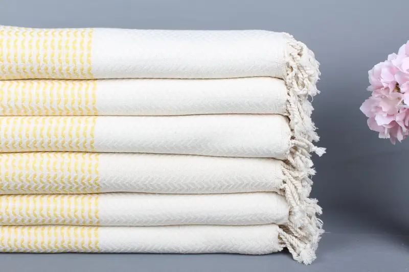 Toalla de Playa de Algodón Orgánico Turco Diamante Amarillo, 40x77 Pulgadas