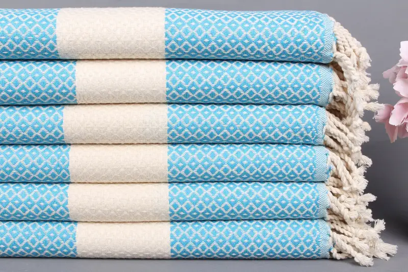 Toalla de playa turca de algodón orgánico Diamante azul, 38 x 71 pulgadas