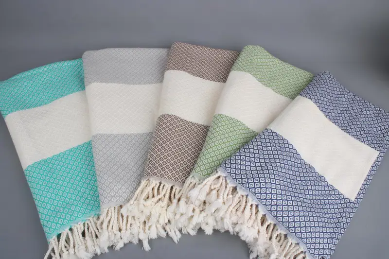 Toalla de playa turca de algodón orgánico Diamond Towel, beige, 36 x 71 pulgadas