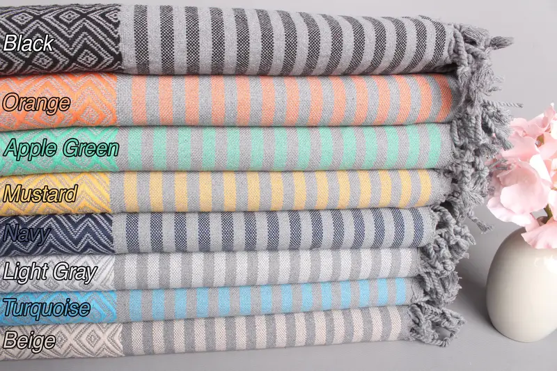 Toalla de playa de algodón orgánico Diamond Towel, beige, 40 x 71 pulgadas
