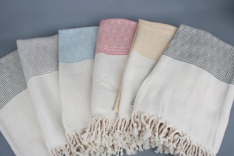 Toalla de algodón turco personalizada con tejido de diamantes, color beige, 40 x 71 pulgadas