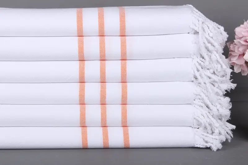 Toalla de playa turca de algodón naranja a rayas, 40 x 71 pulgadas