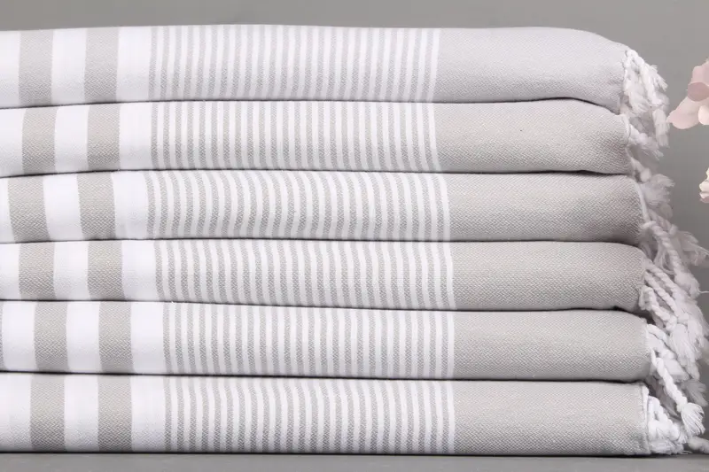 Toalla de playa turca personalizada de algodón orgánico con rayas grises claros, 40 x 71 pulgadas