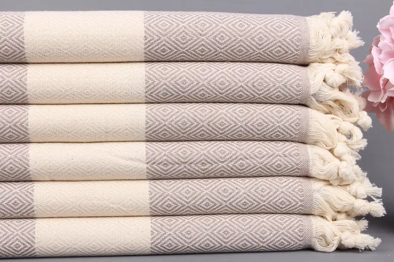 Toalla de baño turca beige peshtemal de diamante orgánico, 40 x 71 pulgadas