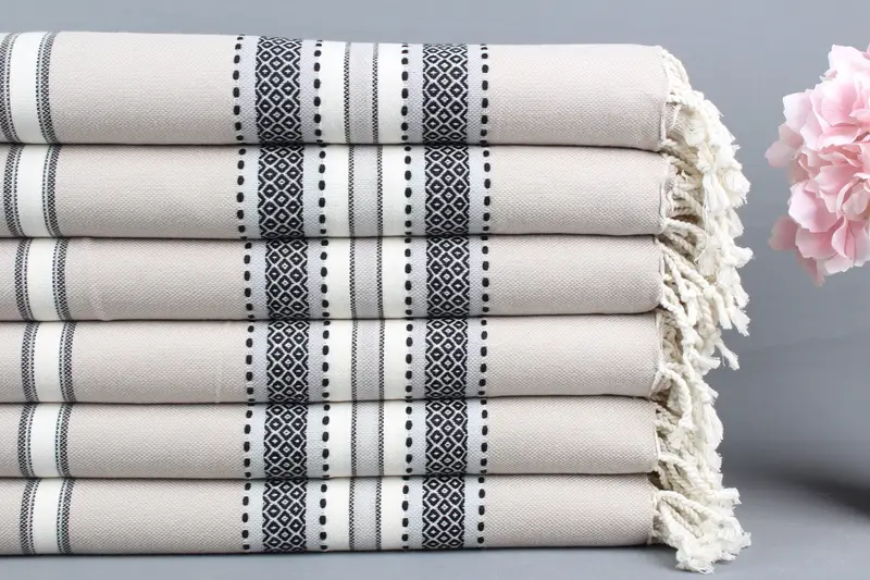 Toalla Turca de Algodón Orgánico Rayas Beige, 40x71 Pulgadas