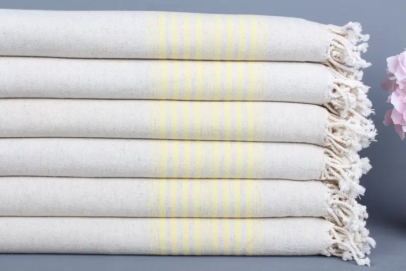 Toalla de baño turca de algodón orgánico con rayas amarillas, 40 x 67 pulgadas