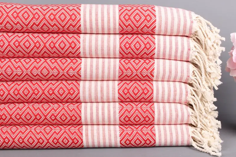 Toalla Turca Personalizada de Algodón Orgánico Diamante Rojo, 40x67 Pulgadas