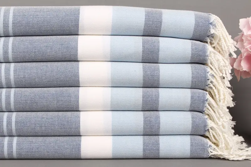 Toalla turca personalizada de algodón orgánico a rayas azul marino, 40 x 75 pulgadas