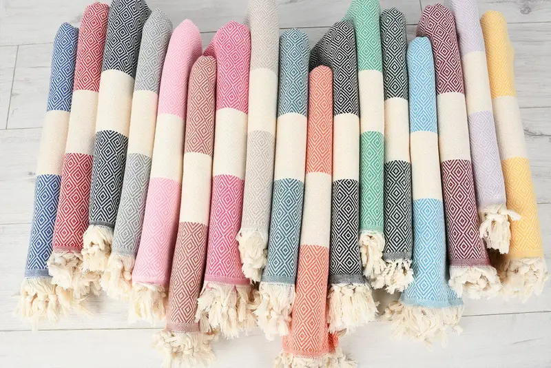 Toallas turcas personalizadas con patrón de diamantes de algodón orgánico, 18 x 36 pulgadas