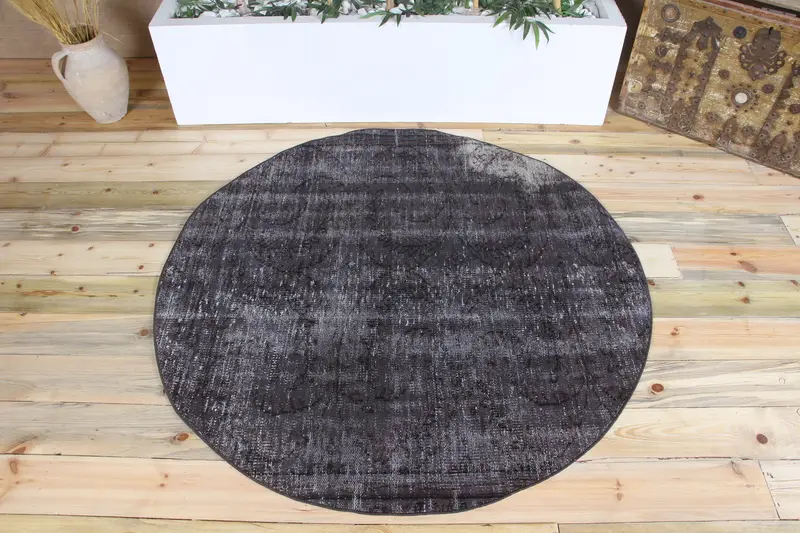 Alfombra de alfombra, alfombra vintage de 4,6x4,6 pies, lana de alfombra floral negra