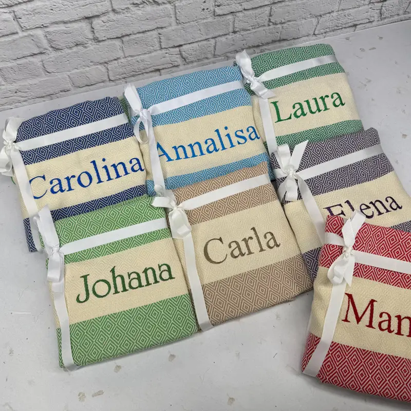 Toalla de playa personalizada de algodón turco con patrón de diamantes, 40 x 70 pulgadas