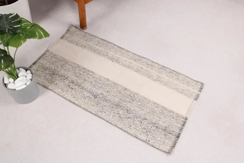 Alfombra turca pequeña 1,7x3,2 pies, alfombra de lana vintage Ikat gris