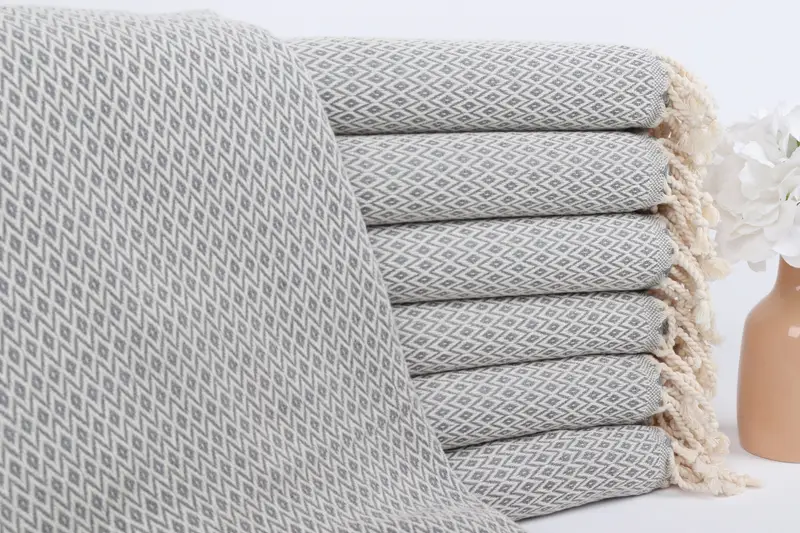 Toalla de playa turca Diamante gris oscuro, 40 x 71 pulgadas