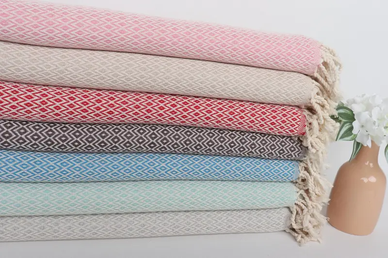 Toalla de regalo para dama de honor Diamond de algodón orgánico beige, 40 x 71 pulgadas