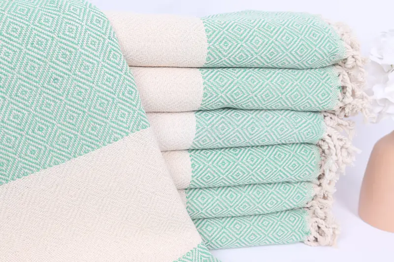 Regalo de inauguración de la casa Toalla de algodón verde Diamante, algodón orgánico, 40 x 71 pulgadas