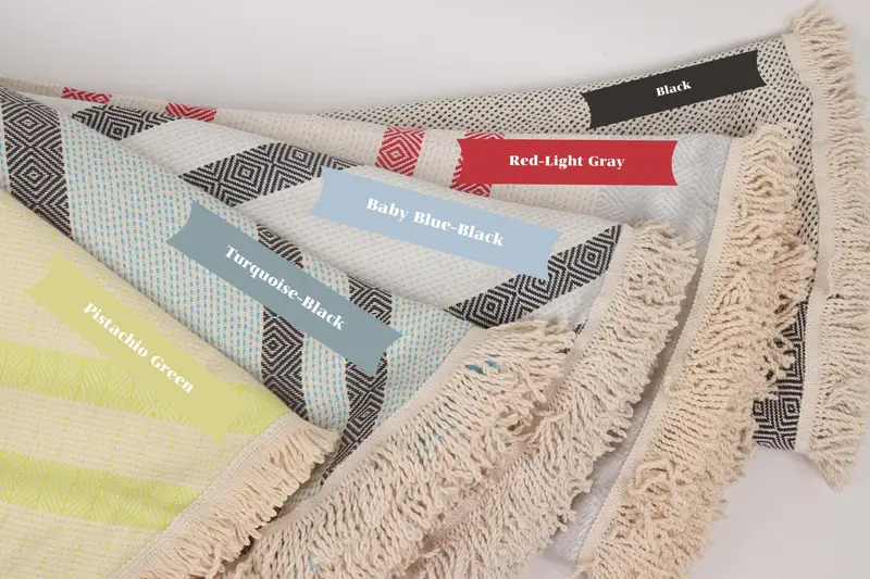 Toalla de playa bordada de algodón orgánico, diamante redondo beige, 63 x 63 pulgadas