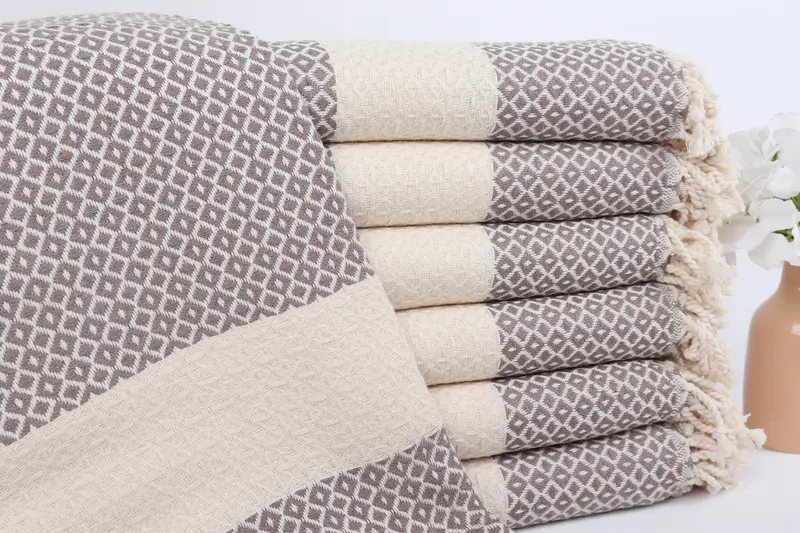 Toalla de playa bordada de algodón turco con diamantes marrones, 40 x 71 pulgadas