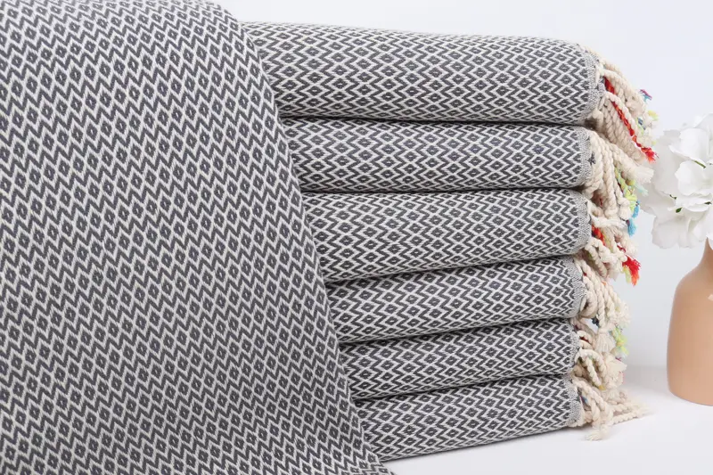 Toalla de playa turca personalizada con diamante gris oscuro, 40 x 71 pulgadas