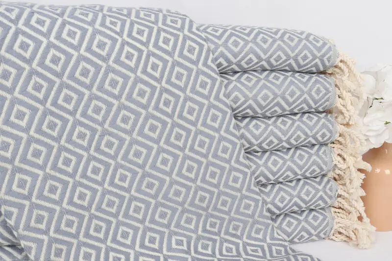 Toalla de playa turca personalizada con diseño de diamantes grises, 40 x 71 pulgadas