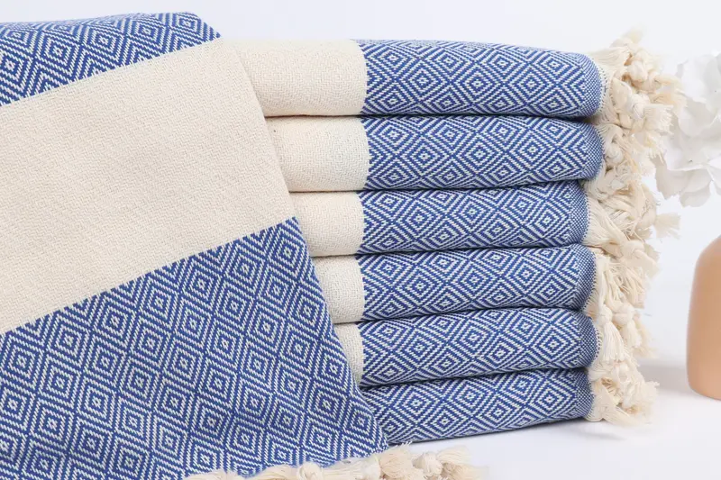 Toallas turcas de playa personalizadas Saxofón azul diamante, beige, 40 x 71 pulgadas
