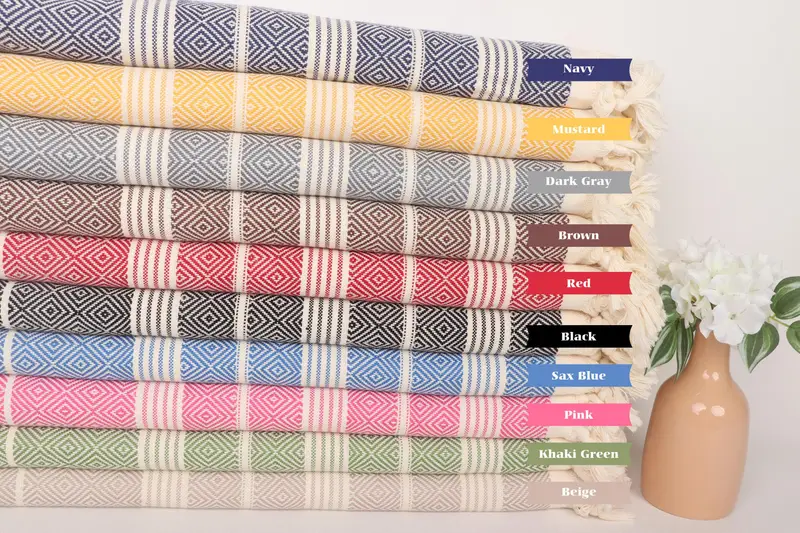 Toalla de playa Diamond personalizada de algodón turco, color beige, 38 x 69 pulgadas