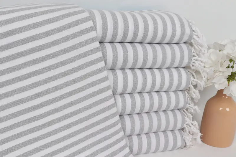 Toalla de mano personalizada de algodón turco a rayas gris claro, 20x32 pulgadas