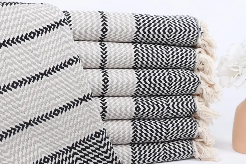 Toalla de playa personalizada con rayas de diamantes en negro y gris claro, 40 x 79 pulgadas