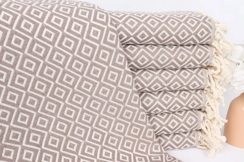 Toalla de playa turca con monograma de diamante marrón de 40 x 71 pulgadas