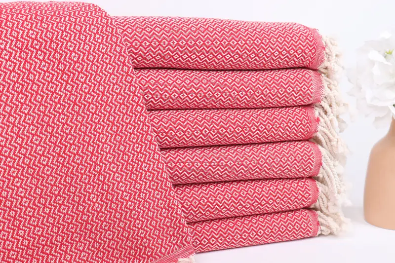 Toalla de playa personalizada con diamantes rojos, beige, algodón turco orgánico, 40 x 71 pulgadas