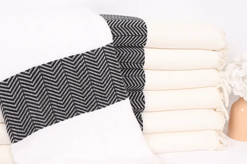 Manta para sofá, Chevron de algodón blanco y negro, 79x83 pulgadas