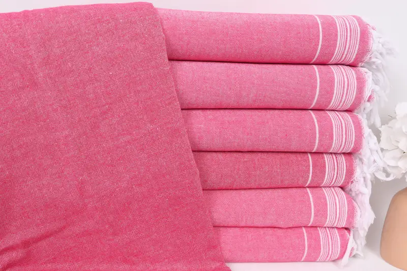 Manta de algodón fucsia a rayas, 56 x 91 pulgadas
