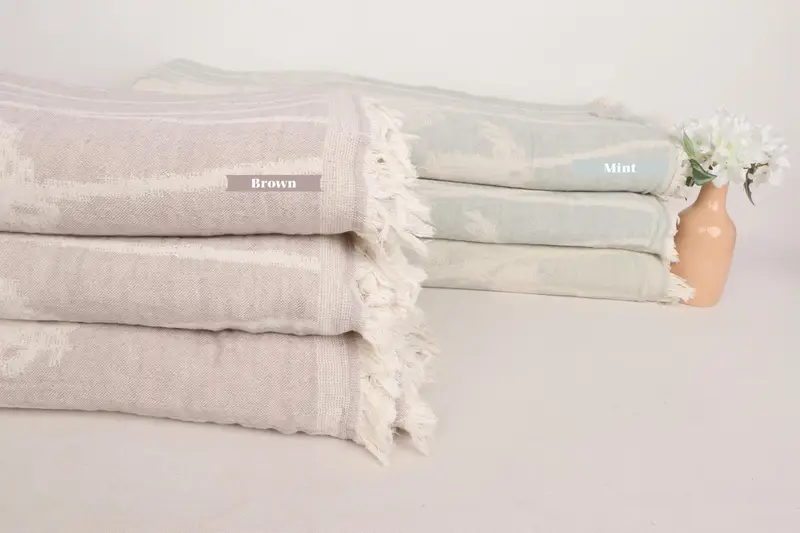 Manta de algodón con diseño floral tamaño doble, borde beige, 83 x 91 pulgadas