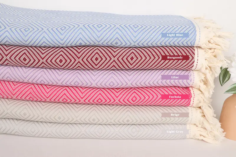 Manta de algodón de diamante personalizada con borde beige, 79 x 91 pulgadas