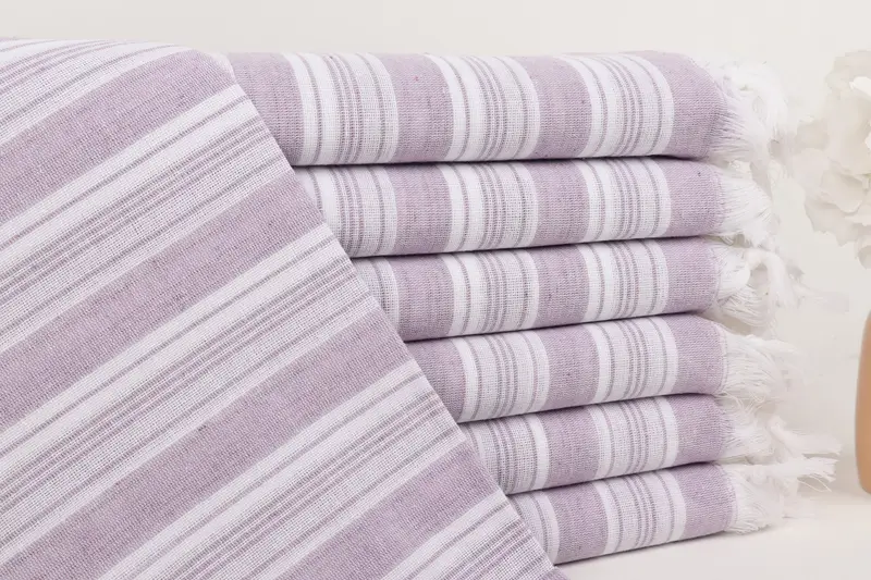 Toalla de baño de algodón a rayas lila para despedida de soltera, 40 x 71 pulgadas