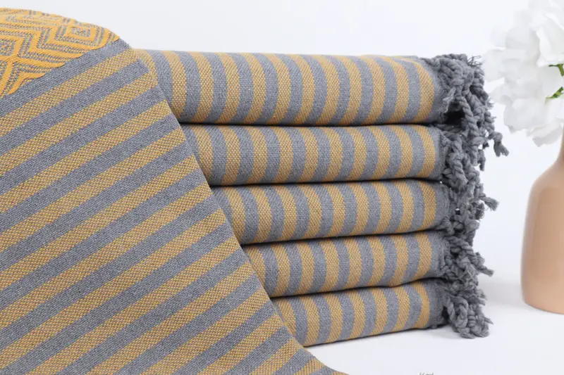 Toalla de algodón mostaza Diamond, 40x71 pulgadas, estilo contemporáneo