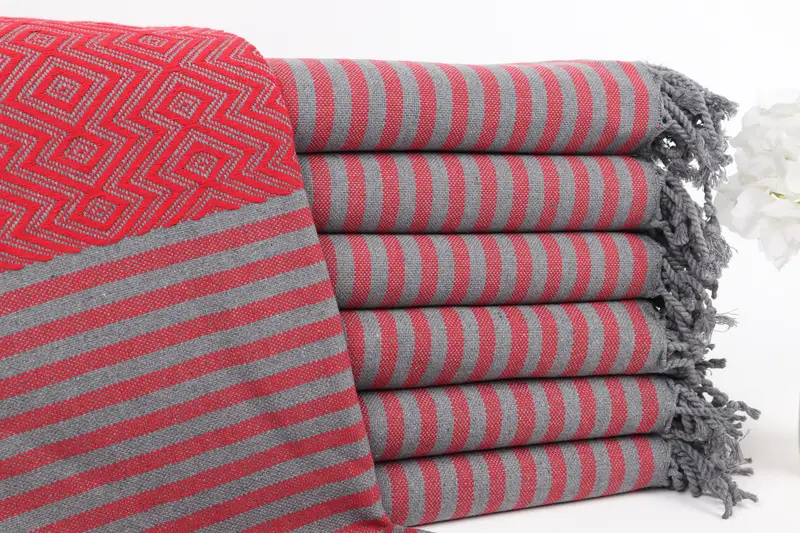Toalla de algodón roja Toalla de baño con forma de diamante, 40x71 pulgadas