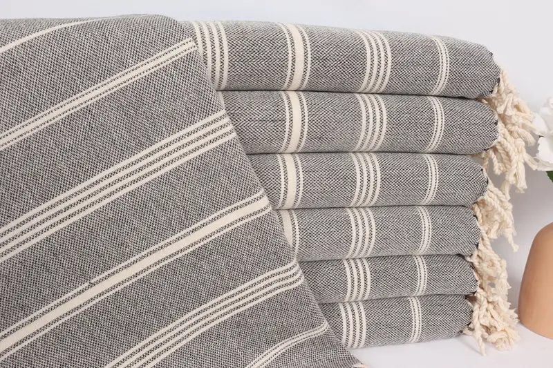 Toalla de mano turca de algodón a rayas negras, 24x36 pulgadas