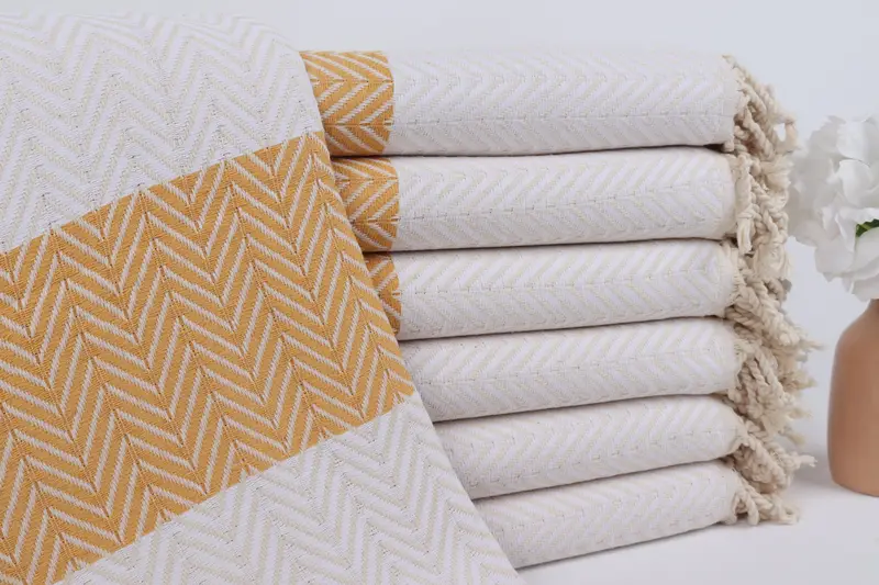 Toalla de baño turca personalizada con bordado de chevrón blanco y mostaza, 40 x 71 pulgadas