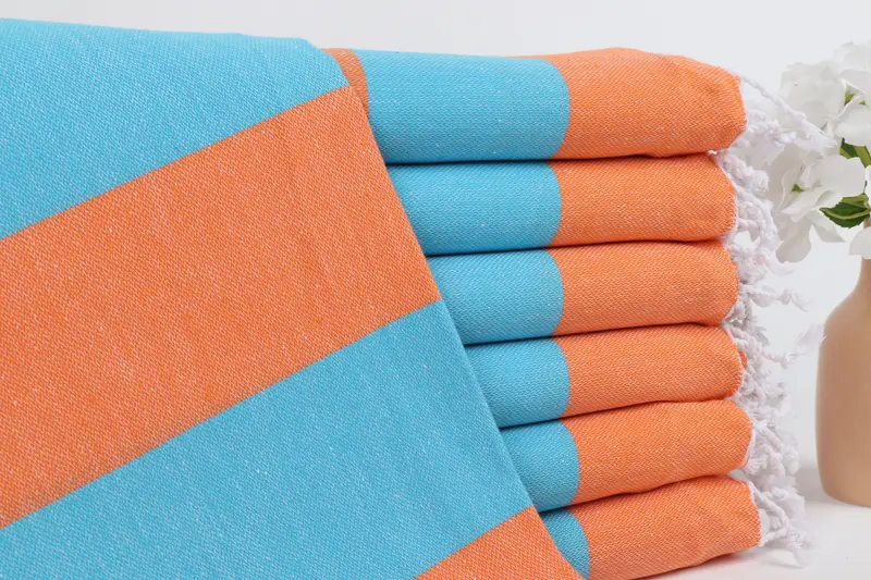 Toalla personalizada a rayas naranja-turquesa, 40 x 71 pulgadas