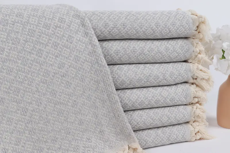 Toalla de playa turca personalizada con diamante gris claro, 40 x 71 pulgadas