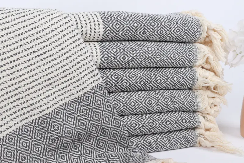 Toalla de playa turca personalizada con diamante gris oscuro, 36 x 71 pulgadas