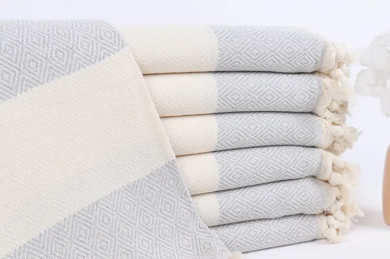 Toallas turcas de playa con monograma de diamante gris claro, 40 x 71 pulgadas