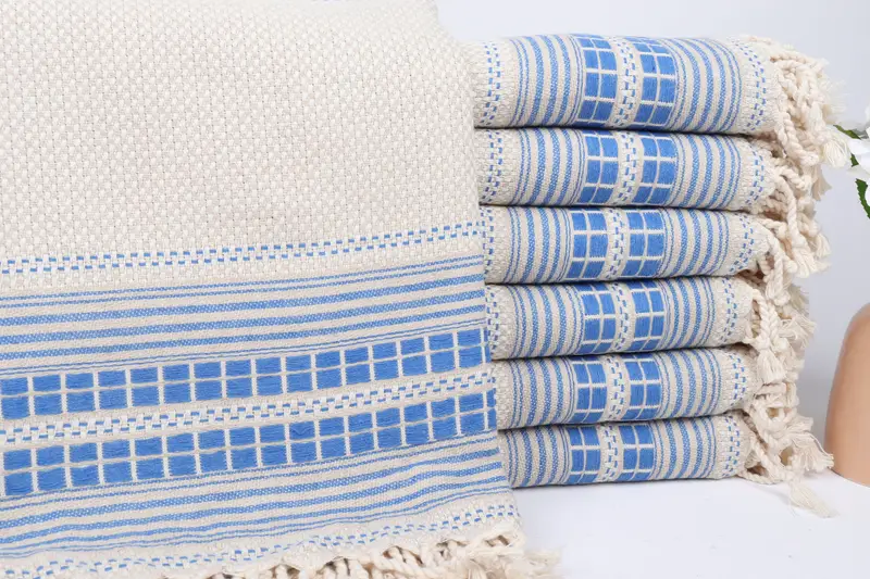 Toalla de playa turca personalizada de lino azul, 38 x 65 pulgadas