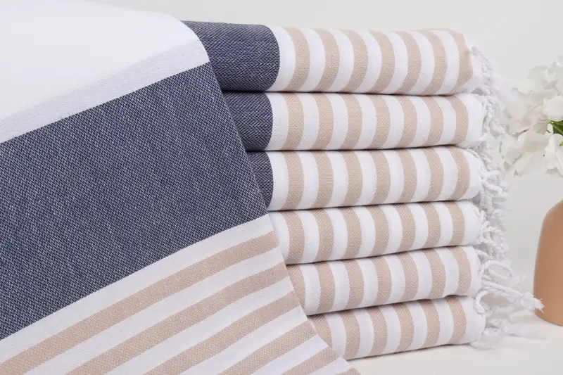 Toalla Azul Marino-Beige Algodón Turco Personalizada 40x71 Pulgadas