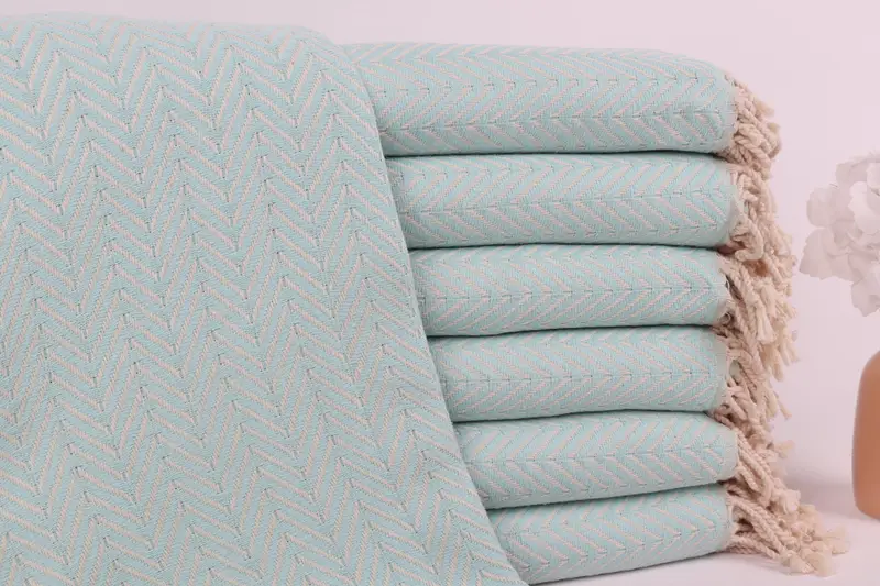 Toalla de playa turca personalizada con monograma de color menta Chevron, 40 x 71 pulgadas