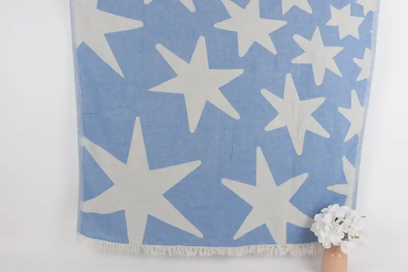 Toalla de playa turca personalizada con patrón de estrella azul, 36x67 pulgadas