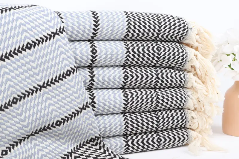 Toalla Turca Toalla de Playa Personalizada Rayas de Diamantes Negro-Azul, 40x79 Pulgadas