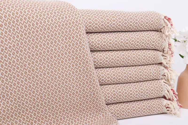 Toalla de baño turca con bordado de diamantes marrones, 40 x 71 pulgadas