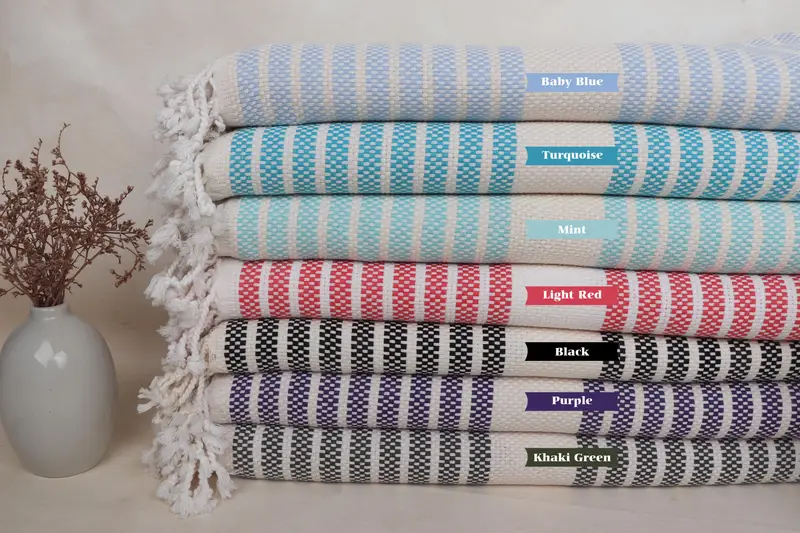 Toalla de baño turca de algodón para playa, rayas beige, orgánica, 40 x 71 pulgadas