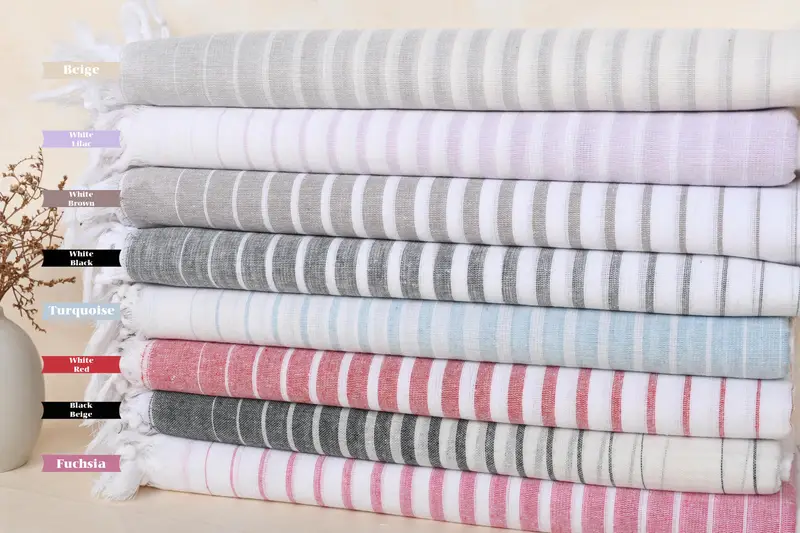 Toalla de playa turca de algodón orgánico a rayas beige, 40 x 69 pulgadas
